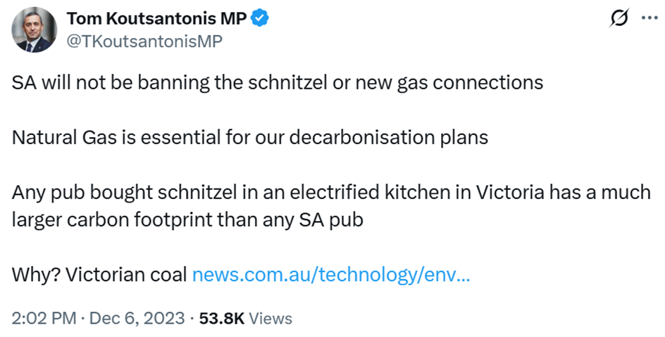 - “The government does not support a national ban on gas connections to new homes.” – Federal Energy Minister Chris Bowen, November 2023.
