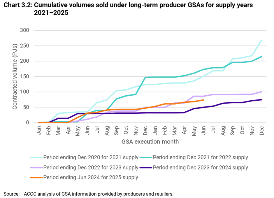 [1] ACCC, 2025, Gas Inquiry 2017-2030: Interim update on long-term contract prices for July–December 2024, https://www.accc.gov.au/system/files/gas-inquiry-march-gsa-2025-interim-report.pdf
